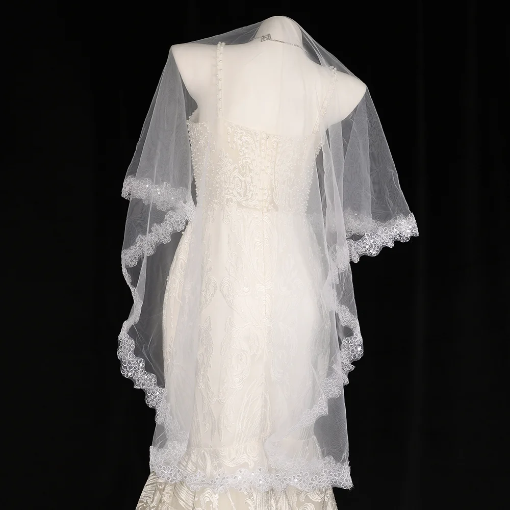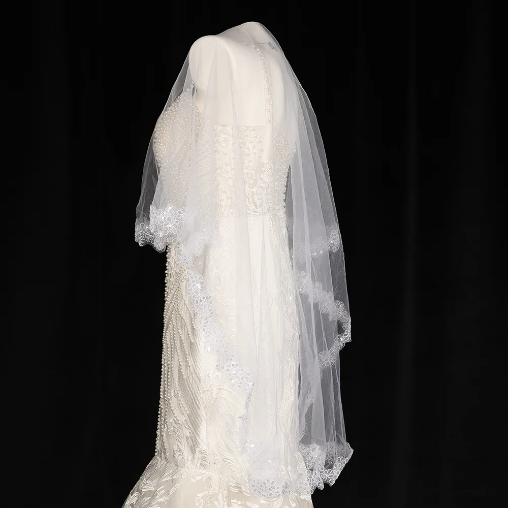 CYG Luksusowy haftowany wzór welonów ślubnych Welony ślubne Wykwintny wzór dla nowożeńców z cekinami